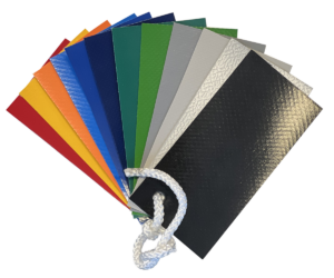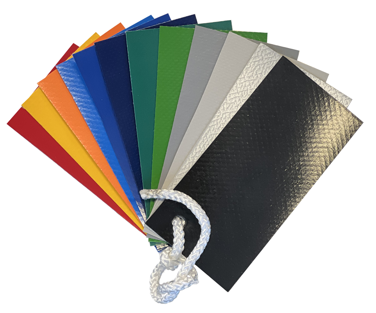 Industridraperi, finns i flera färger, transparent med färgad undre halva. Kan här beställas med rätt antal öljetter för din hall. Välj färg, ange antal öljetter och det antal draperier du önskar beställa.