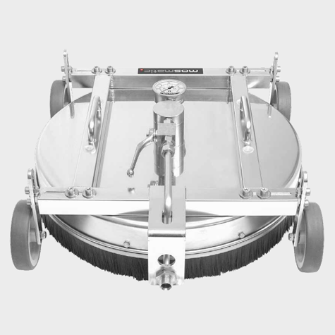 Takrengöraren är ett industriellt kvalitetsverktyg som kan användas snabbt och effektivt medan operatören står säkert på nocken. Mosmatic takrengörare, där säkerhet, stabilitet och städresultat är fokus. Tillverkad i rostfritt stål ger takrengöraren optimala prestanda under hårda förhållanden. Däckshöjd och hjulbredd är justerbara vilket ger dig en fördel vid
