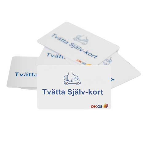 Tryckta RFID-kort i OKQ8-design producerade av Constant Clean.